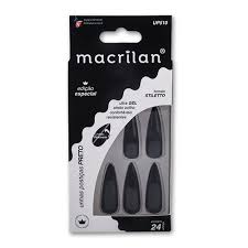 Unhas Posticas Macrilan. especialmente desenvolvidas em uma versao colorida. estilo stiletto longa. para uma aplicacao rapida e segura.