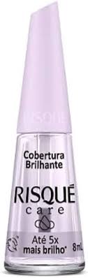 A Cobertura Brilhante da linha Risque Care proporciona ate 5X mais brilho. para um brilho intenso apos a esmaltacao cor . Protege a cor do esmalte e auxilia na durabilidade dele. Risque Care e uma linha de cuidados completa do inicio ao fim. Conta com 7 produtos em sua linha. todos eles com oleos naturais. Um cronograma de cuidados antes. durante e depois da esmaltacao.