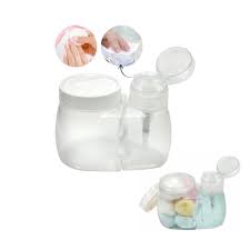 Evita que o liquido derrame. quando pressionamos a valvula a acetona sobe pelo tubo chegando a parte de cima da base. Facilita o manuseio da acetona. evita desperdicio e maior conservacao do produto. Conta com porta algodao . Sao dois potes encaixados um no outro. tornando em apenas um. podendo ser usados como conjunto ou separadamente. Design permite o desencaixe para separacao do conjunto.