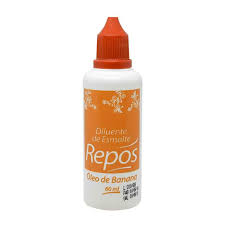 Oleo Banana Repos Diluidor de Esmalte 60ml O Diluente de Esmalte Repos e indicado para dissolver e melhorar a textura sem modificar o tom ou a qualidade. Nao estraga o esmalte ou altera o seu tempo de secagem. Pode ser utilizado para remocao do esmalte sem deixar a unha quebradica ou esbranquicada.