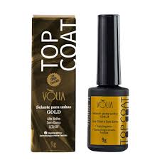 O Top Coat Gold Volia 9g e o finalizador sem goma com glitter dourado para unhas. que atua como um selante em gel para proporcionar maior durabilidade. brilho e resistencia. Glitter Dourado Alto Brilho Longa durabilidade Sem goma