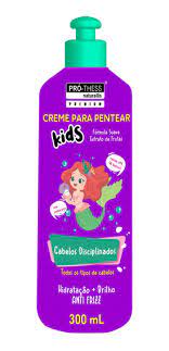 PRO THESS CREME PARA PENTEAR KIDS CABELOS DISCIPLINADOS 300 ML O Creme Para Pentear Kids Cabelos Disciplinados Pro Thess e ideal para cuidar dos fios dos cabelos finos dos pequenos. pois proporciona emoliencia. restauracao. sedosidade e desembarco perfeito. Alem disso traz propriedades nutritivas e hidratantes. deixando os fios selados. macios e brilhantes.