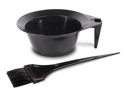 Tigela graduada com alca. e ideal para qualquer tipo de quimica. possui medidor para processo de coloracao. Com suporte para apoio de um pincel para tintura. Acompanha tambem um pincel grande para utilizar nos processos de quimica nos cabelos.