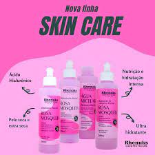 Kit Skin Care Rosa Mosqueta 4 Unidades Rhenuks Contem 4 itens sendo Sabonete de Limpeza Facial. Hidratante Facial. Esfoliante Facial e Agua Micelar Demaquilante