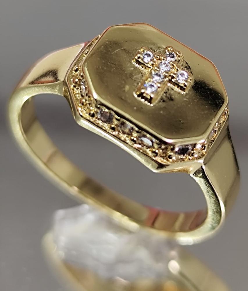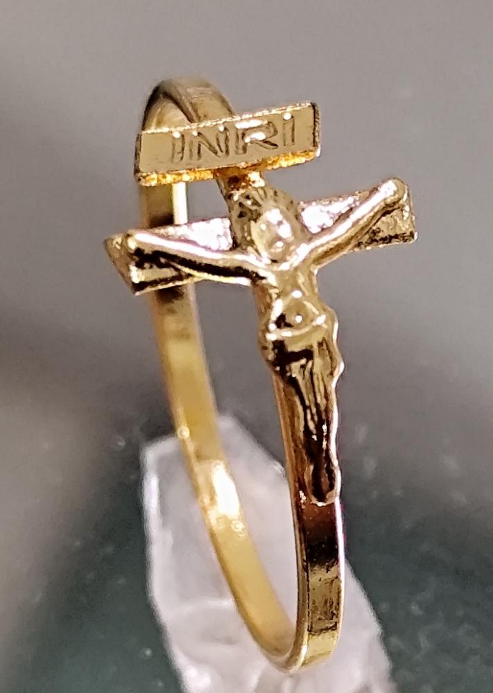 Anel INRI crucifixo aro 17 dourado