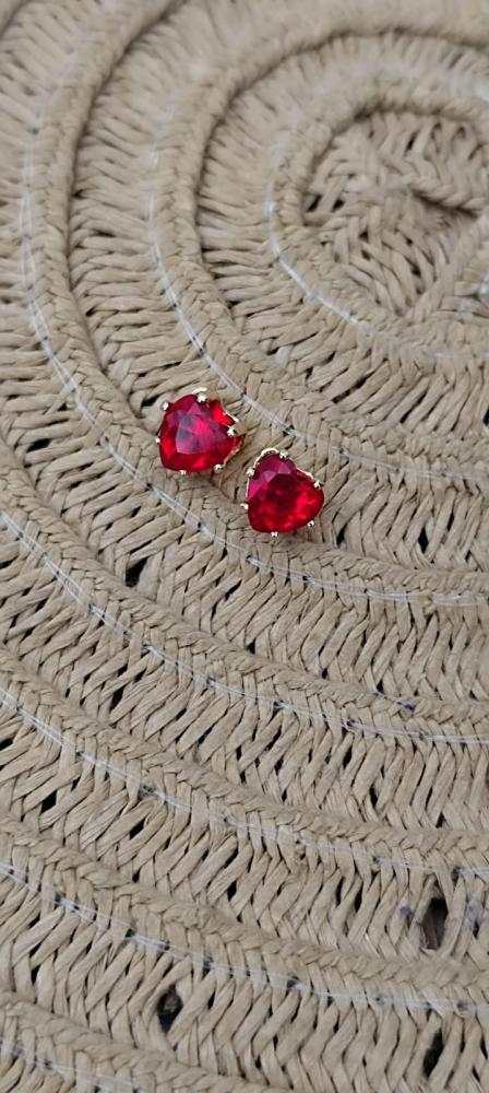Brinco de pino coração vermelho médio banhado a prata TRIO
