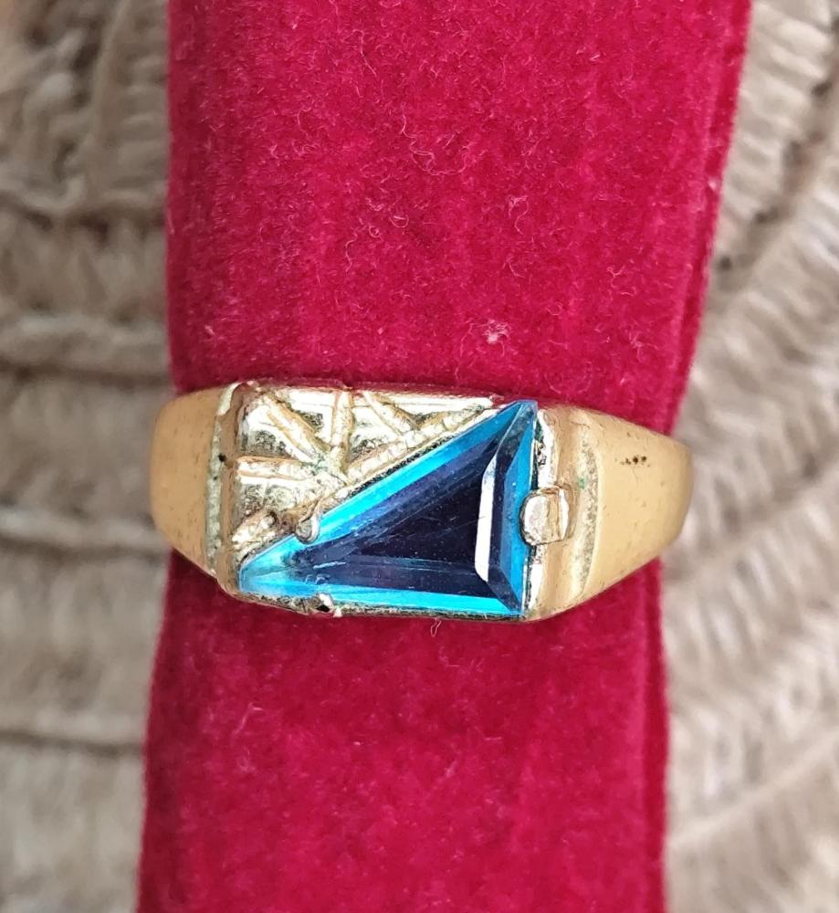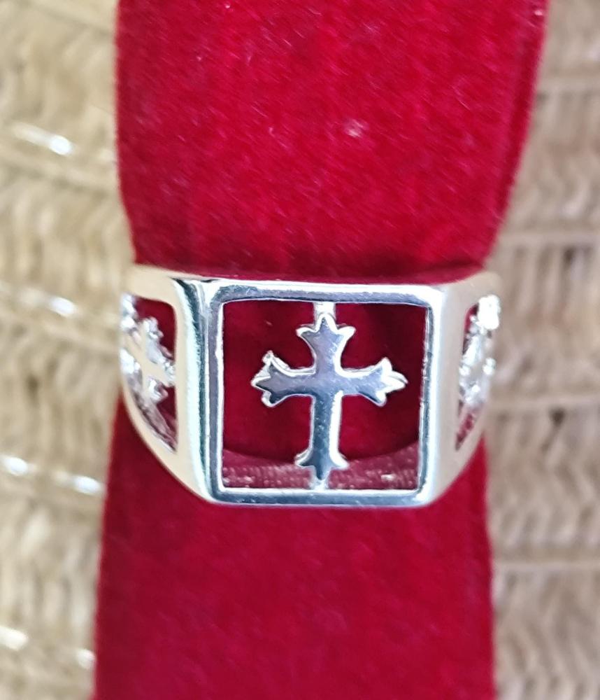 Anel masculino aro 23 Nossa Senhora com detalhes e12 pedrinha dourado