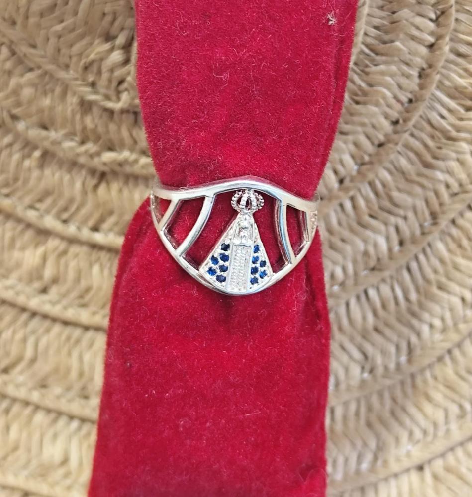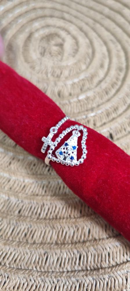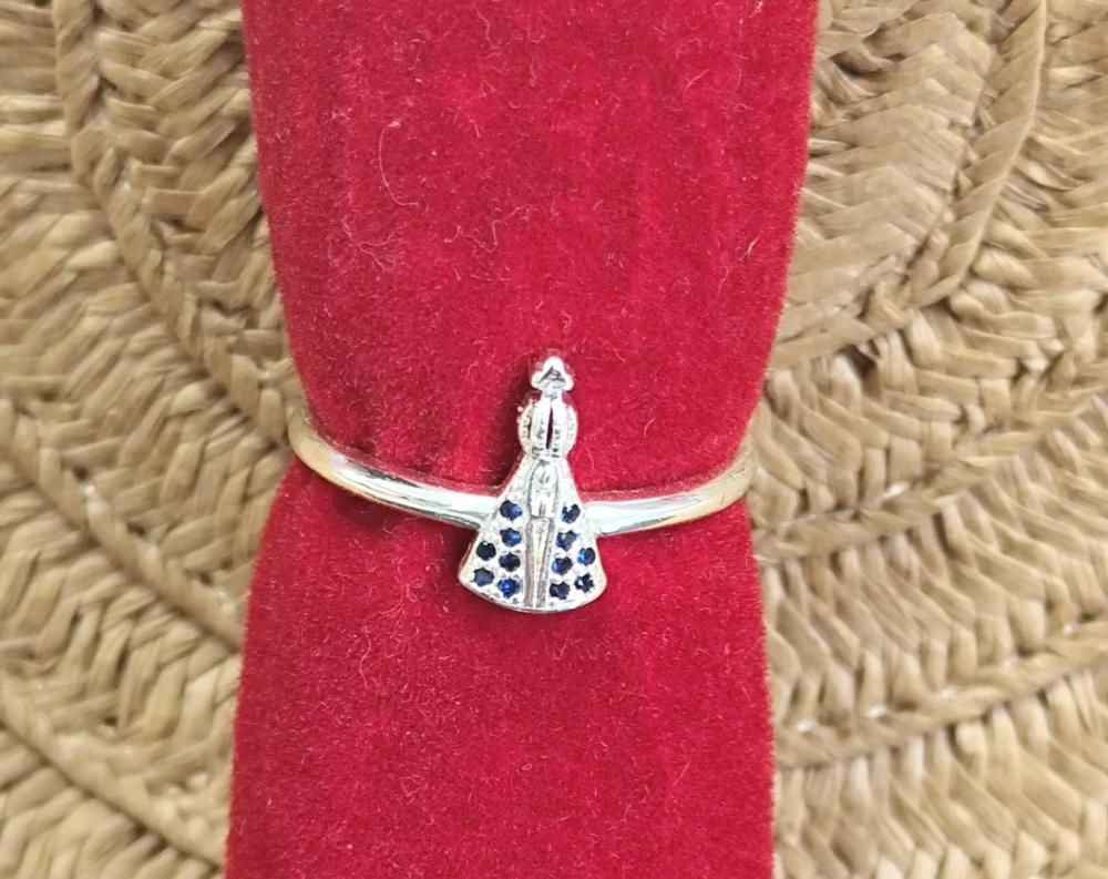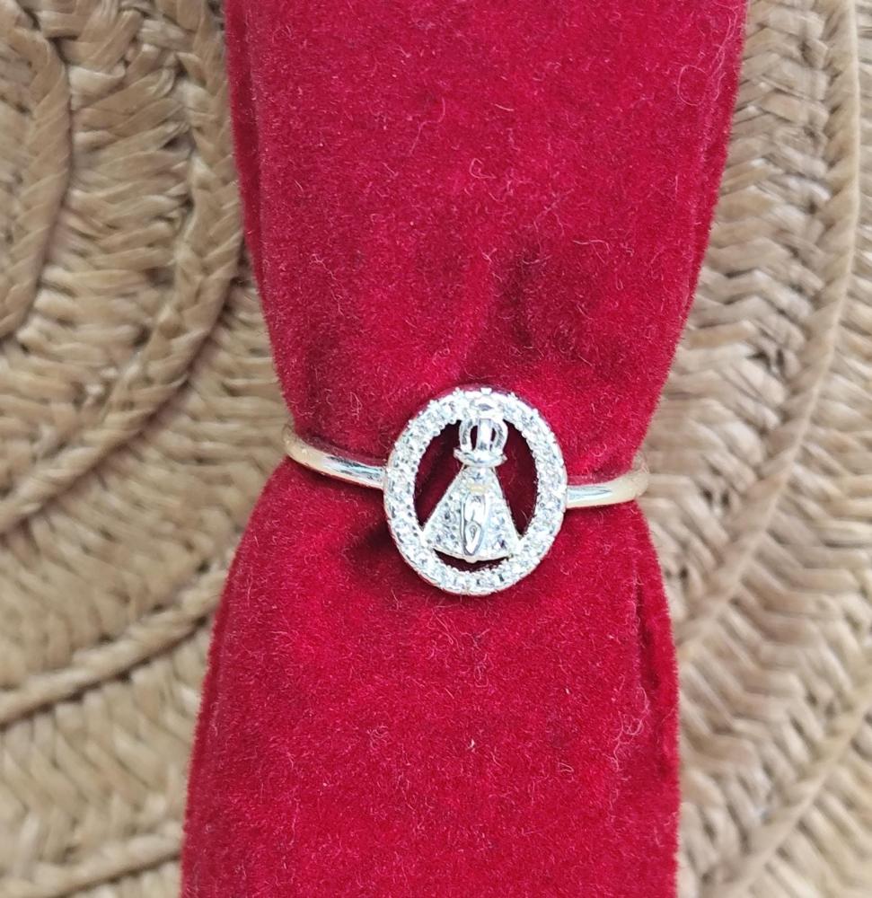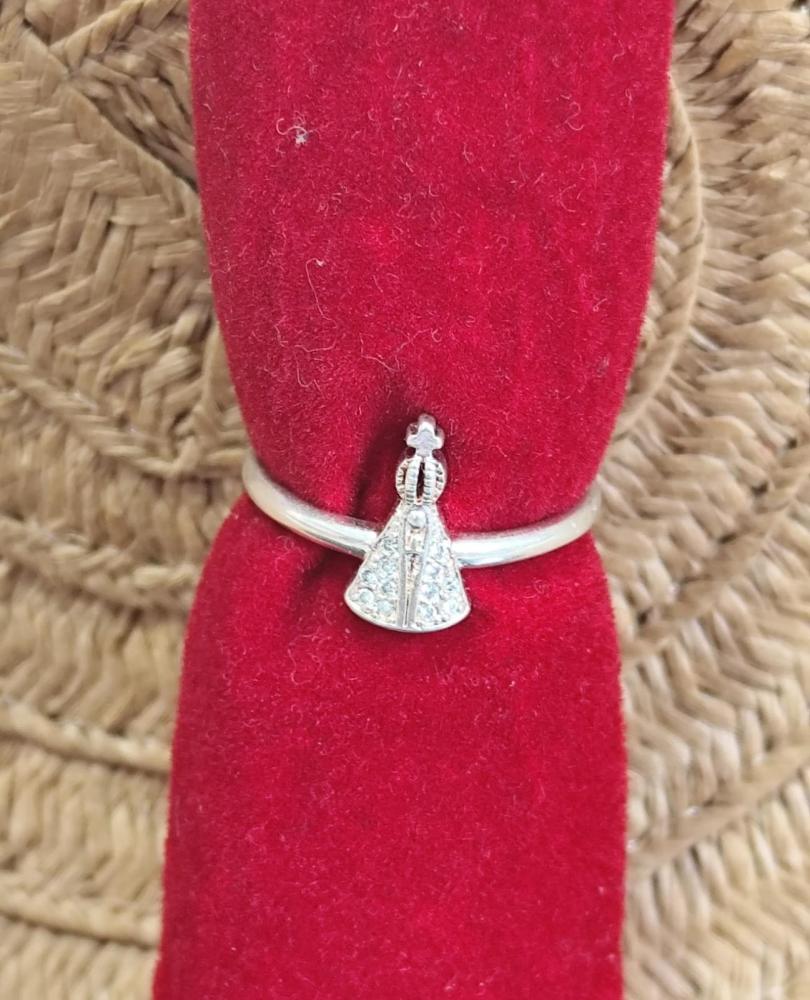 Anel aro 20Nossa Senhora com circulo e pedrinhas brilhante banhado a prata