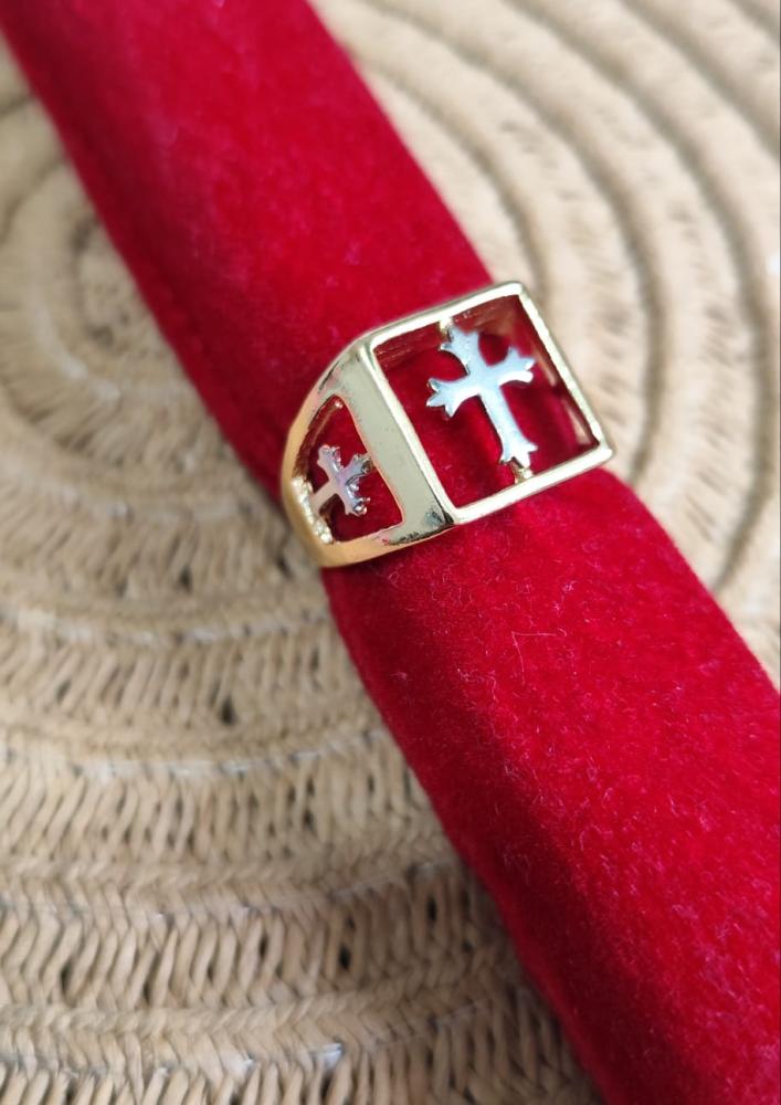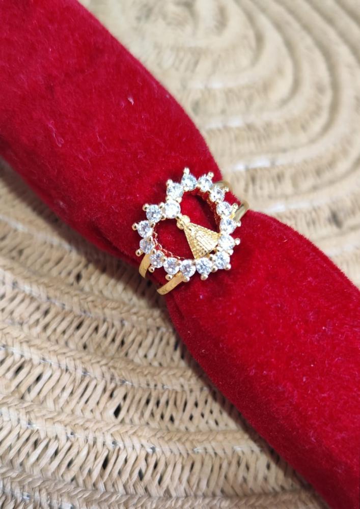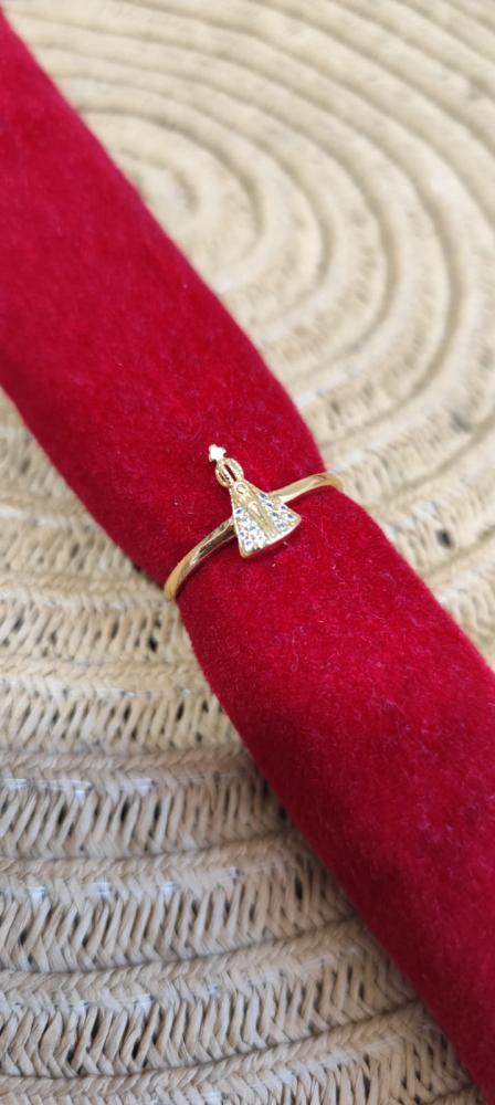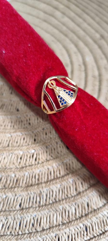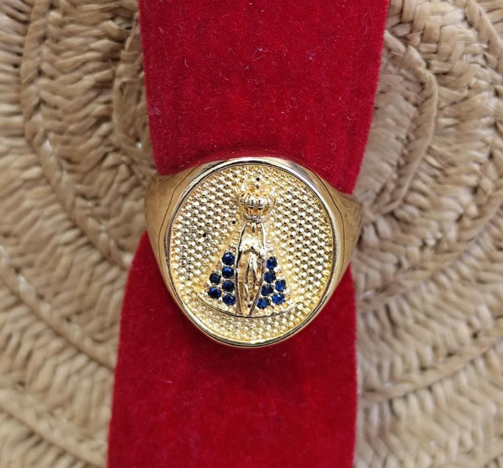 Anel aro 20Nossa Senhora com circulo e pedrinhas brilhante banhado a prata