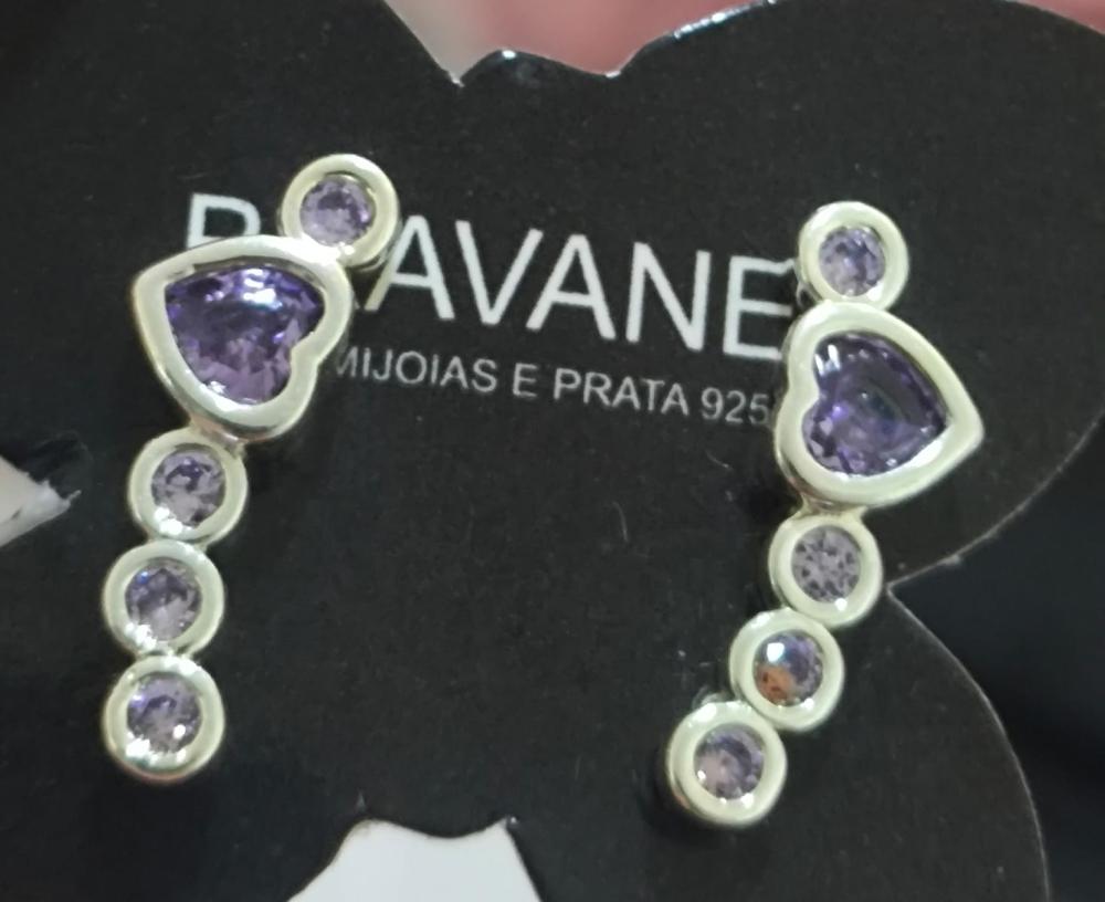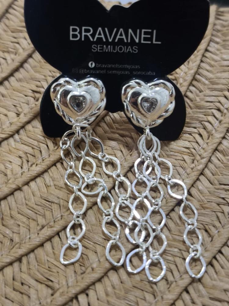 Brinco argolinha 4 coração Crystal médio banhado a prata trio