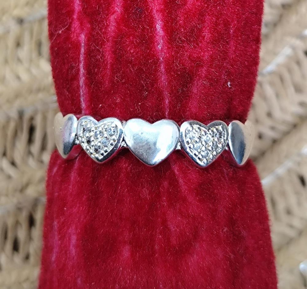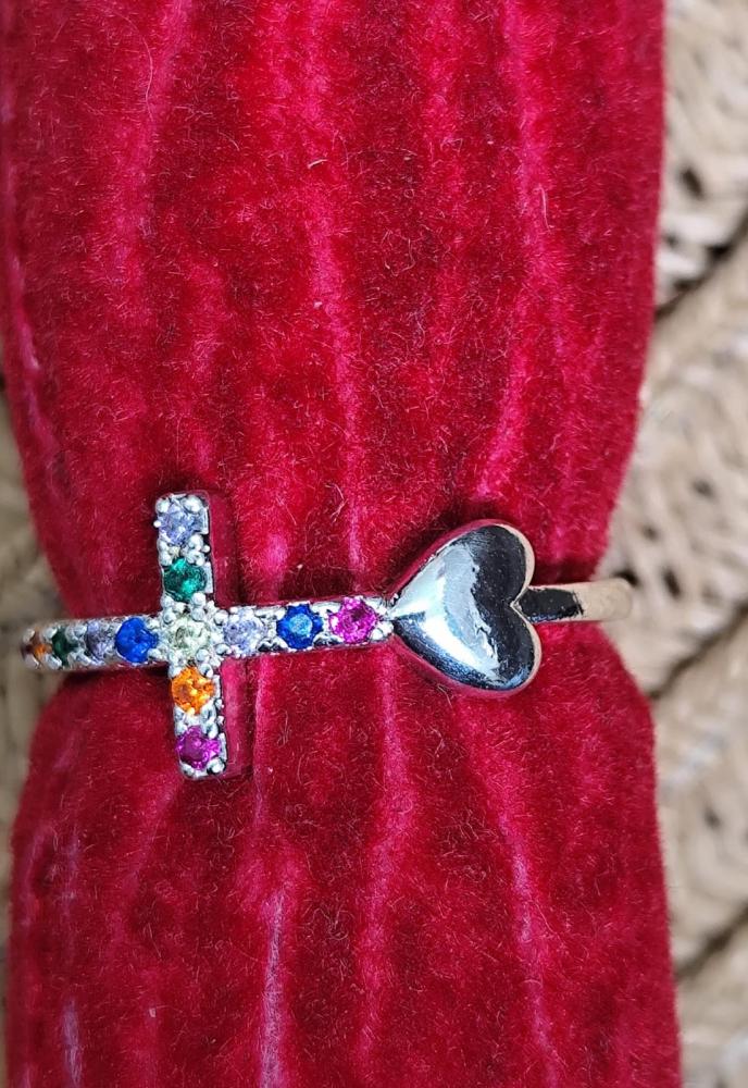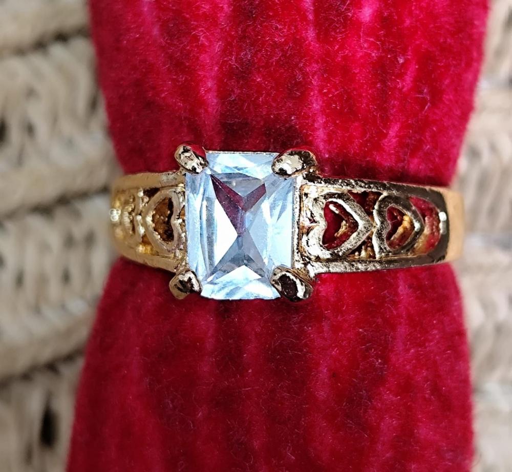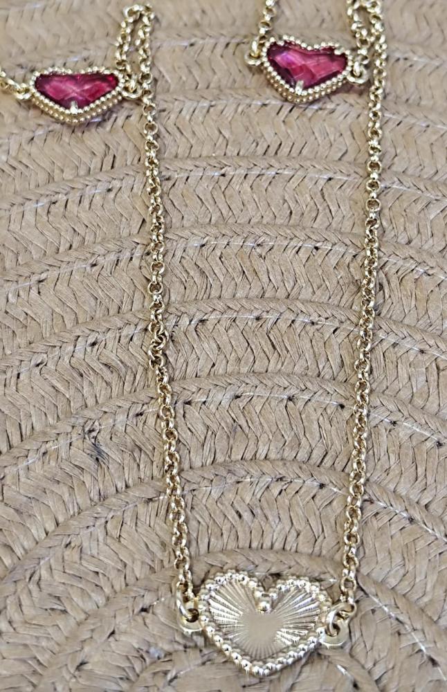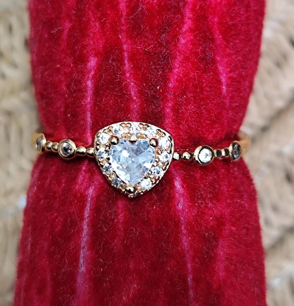 Anel triplo liso e vasado com 3 corações com pedra verde,rosa e azul dourado aro 19