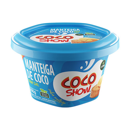 Manteiga de Coco 200g A manteiga de coco Coco Show e feita a base de oleo vegetal. possui sabor manteiga. sem lactose e cremosa. Feita para substituir a manteiga tradicional e a margarina. Voltado para os consumidores veganos intolerantes a lactose e que desejam degustar produto saboroso. cremoso querem ingerir alimentos mais naturais.