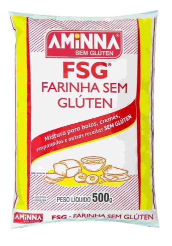Farinha Sem Gluten FSG® Aminna. 500g A Farinha sem Gluten mais querida do Brasil Composta por Farinha de Arroz. Fecula de Mandioca. Fecula de Batata e Goma Xantana. na medida certa. e a mistura perfeita para as suas receitas. Pode ser perfeitamente substituir a Farinha de Trigo em qualquer receita. Possui a melhor certificacao. que e a sua aprovacao Livre de Gluten e de Leite. e tambem um produto vegano e sem contaminacao com Soja Produto pronto para o consumo preparo de receitas Modo de Conservacao Deve ser mantido em local fresco e seco. e consumido dentro do Prazo de Validade informado na embalagem. Ingredientes Farinha de arroz. fecula de batata. fecula de mandioca e goma xantana. NAO CONTEM GLUTEN. NAO CONTEM LEITE.
