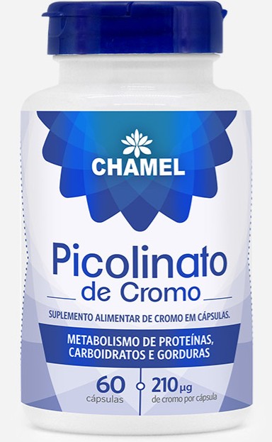 O que e Picolinato de Cromo O cromo e um mineral essencial que participa do metabolismo de carboidratos. proteinas e gorduras. Dessa forma. o cromo contribui para manutencao dos niveis normais de glicose no sangue. segundo orientacoes da Uniao Europeia 1 . Na forma de picolinato. esse mineral apresenta alta biodisponibilidade. ou seja. e melhor absorvido pelo organismo. Embora esteja presente em alimentos como brocolis. carne vermelha. aveia e levedura de cerveja. as quantidades consumidas na alimentacao nem sempre sao suficientes. A deficiencia de cromo pode afetar o metabolismo. dificultando a metabolizacao da glicose e do colesterol. Pra que serve o Picolinato de Cromo O Picolinato de Cromo Chamel e um suplemento mineral que auxilia no metabolismo de proteinas. carboidratos e gorduras. Isso significa que ele contribui para o aproveitamento adequado dos nutrientes que consumimos. colaborando para um bom funcionamento do organismo. Quando aliado a habitos saudaveis. como alimentacao equilibrada e pratica de atividade fisica. pode apoiar dietas e o equilibrio dos niveis de energia ao longo do dia. Como usar o Picolinato de Cromo Ingerir 1 capsula ao dia. de preferencia junto a refeicao principal cafe da manha ou almoco . com um copo de agua. Nao exceder a dosagem recomendada.