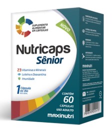 O Nutricaps Senior e um suplemento polivitaminico e mineral desenvolvido pela Maxinutri. formulado especificamente para atender as necessidades nutricionais de adultos geralmente acima de 19 anos. com foco no publico senior . Sua formula contem 23 vitaminas e minerais. com destaque para a inclusao de luteina e zeaxantina. que auxiliam na saude ocular. BENEFICIOS PRINCIPAIS Imunidade Vitaminas A. B6. B12. C. Selenio e Zinco auxiliam no funcionamento do sistema imune. Saude Ossea A Vitamina D auxilia na formacao dos ossos. enquanto a Vitamina K e o Zinco contribuem para sua manutencao. Acao Antioxidante Vitaminas B2. C. E. alem de Selenio e Zinco. protegem contra danos causados pelos radicais livres. Saude Ocular A presenca de luteina e zeaxantina ajuda a proteger a visao contra danos relacionados a idade. Composicao e Uso Segundo a tabela nutricional do produto. cada porcao fornece nutrientes essenciais em dosagens balanceadas Ingredientes Inclui vitaminas do complexo B B1. B2. B3. B5. B6. B12. Biotina e Acido Folico . vitaminas A. C. D3. E e K. alem de minerais como Ferro. Cobre. Cromo. Manganes e Molibdenio. Recomendacao de Uso Ingerir 1 capsula ao dia. preferencialmente junto a uma das principais refeicoes almoco ou jantar para melhor absorcao.