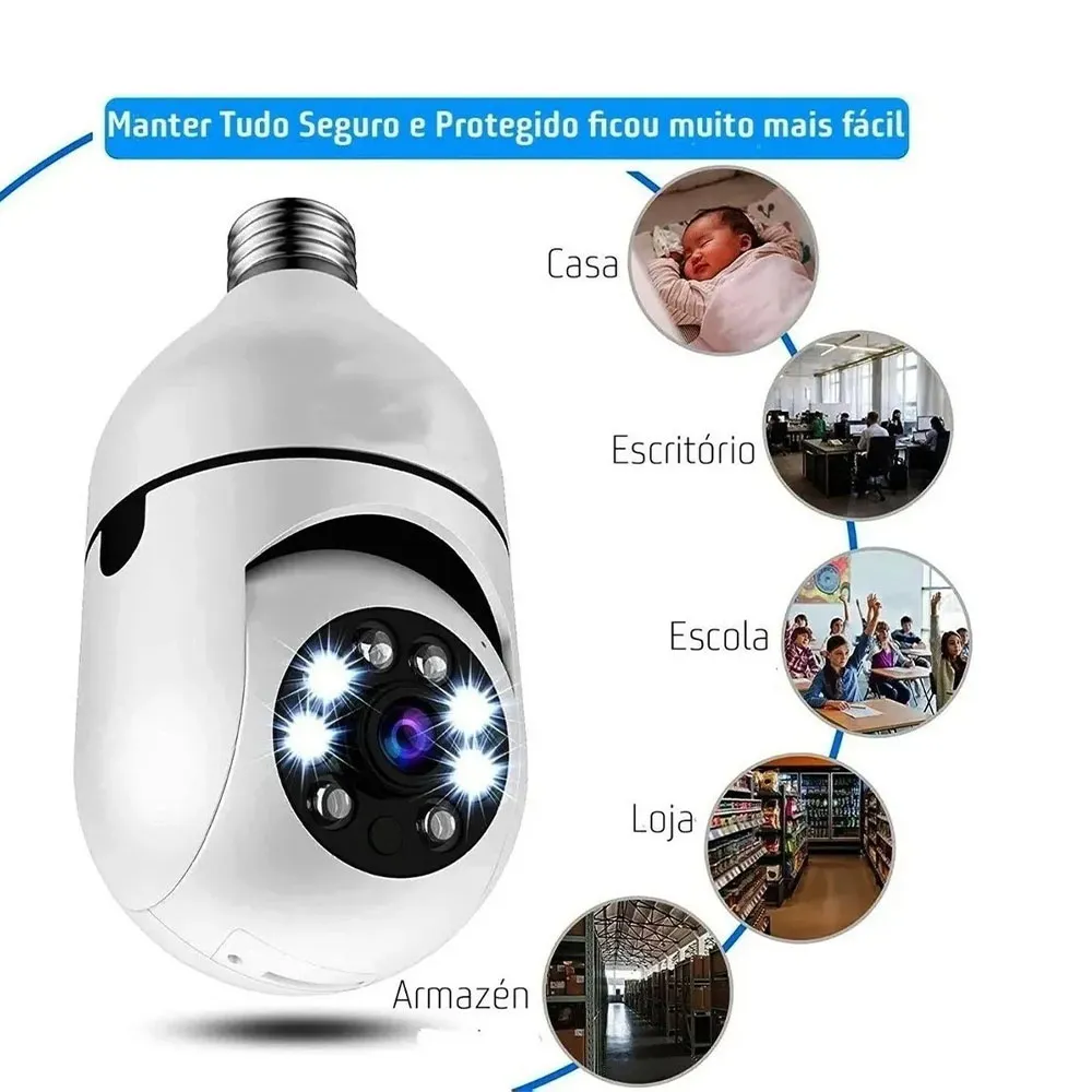 A camera IP modelo 8177QJ da DuraWell combina praticidade e seguranca em um unico produto. com visual de lampada comum e conectividade WiFi. Ideal para monitoramento discreto em ambientes residenciais ou comerciais. ela oferece visualizacao remota em tempo real diretamente pelo celular.