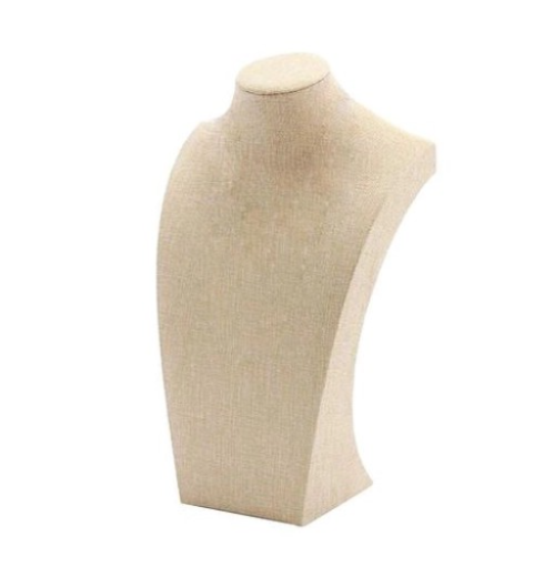 O expositor de colar em linho e ideal para dar destaque as suas pecas de joalheria com elegancia e sofisticacao. Com estrutura resistente e acabamento em tecido bege. e perfeito para vitrines. feiras. lojas ou uso pessoal.